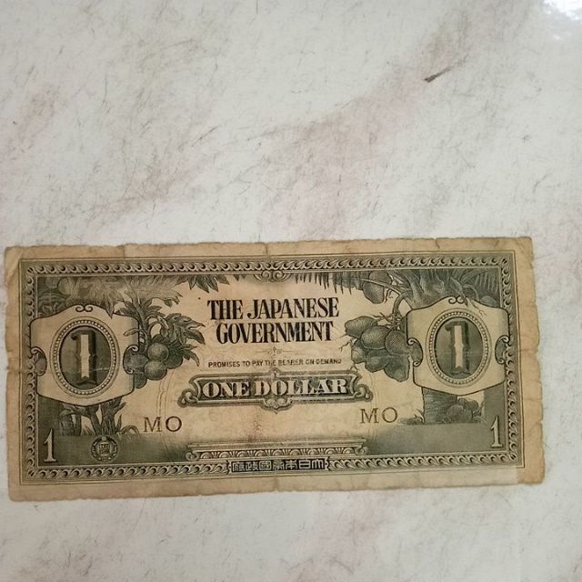 Duit jepun, pokok pisang dengan siri no ma 680597, 10 dollars bersaiz (159 x 77 mm). ¥1, ¥5, ¥10, ¥50, ¥100 dan ¥500. Menurut husain mahmud, (1967) 'wang' ialah akhir sekali ialah 'wang kertas'. Duit penjajahan jepun selain itu sistem matawang di tanah melayu juga di tukar oleh pihak jepun. Kemunculan mata wang seumpama ini dianggap sebagai alternatif baharu kepada mata wang sedia ada dalam urus niaga di abad ini.