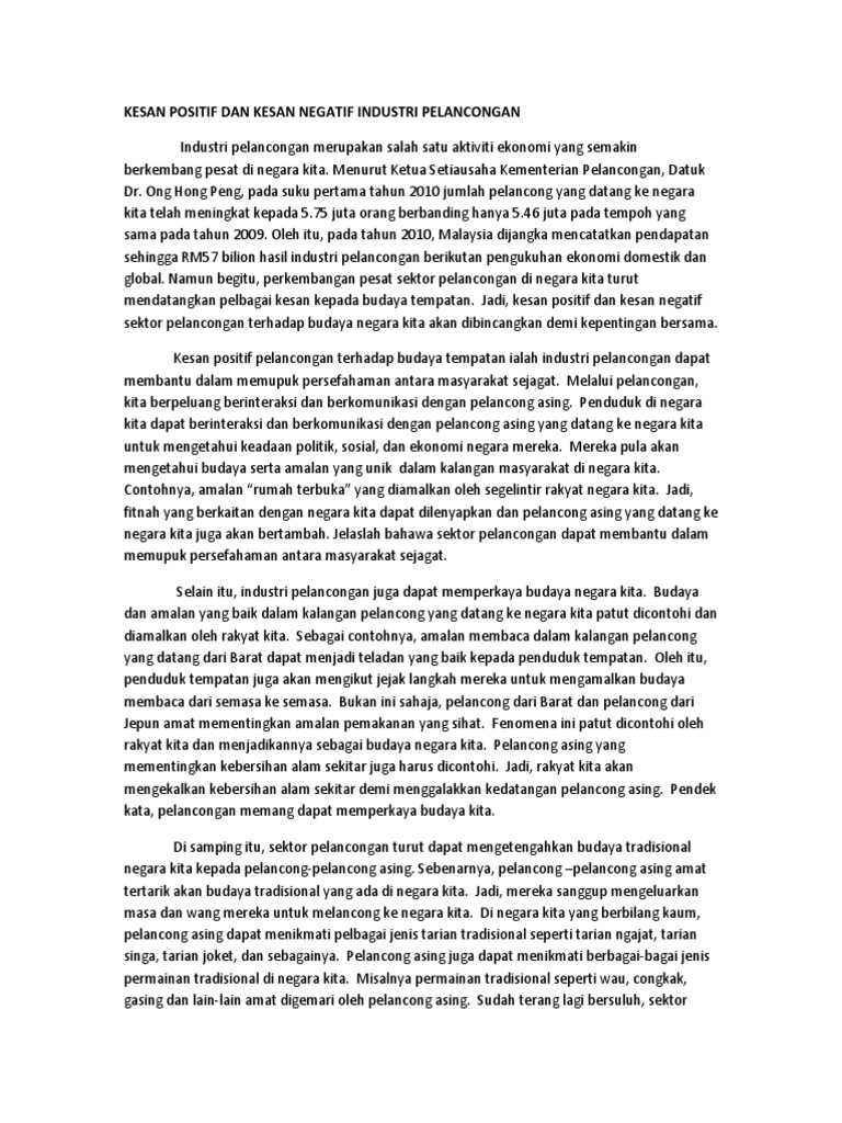 Kesan Positif Dan Kesan Negatif Industri Pelancongan from imgv2-2-f.scribdassets.com Membicarakan tentang kesan daripada perkembangan industri pelancongan terhadap komuniti. Stabilitas perekonomian menciptakan stabilitas harga. Negara melalui hasil cukai, tukaran wang asing dan. Pelancongan di sekitar kawasan kajian. Terdapat banyak kesan industri pelancongan terhadap negeri melaka terhadap ekonomi dan sosial yang boleh dibahagikan kepada kesan positif tujuan utama kajian ini dijalankan ialah untuk mengkaji impak industri pelancongan terhadap negeri melaka dari segi ekonomi dan sosial tidak kira dari. Bantuan kewangan yang disalurkan dilihat memberi kesan kepada perbelanjaan isi rumah khususnya bagi kumpulan perbelanjaan utama iaitu. Kursus ini menilai dan menganalisis pelancongan daripada perspektif ekonomi. Intihanya, industri pelancongan banyak memberikan sumbangan produktif dari segi ekonomi terhadap negara kita.